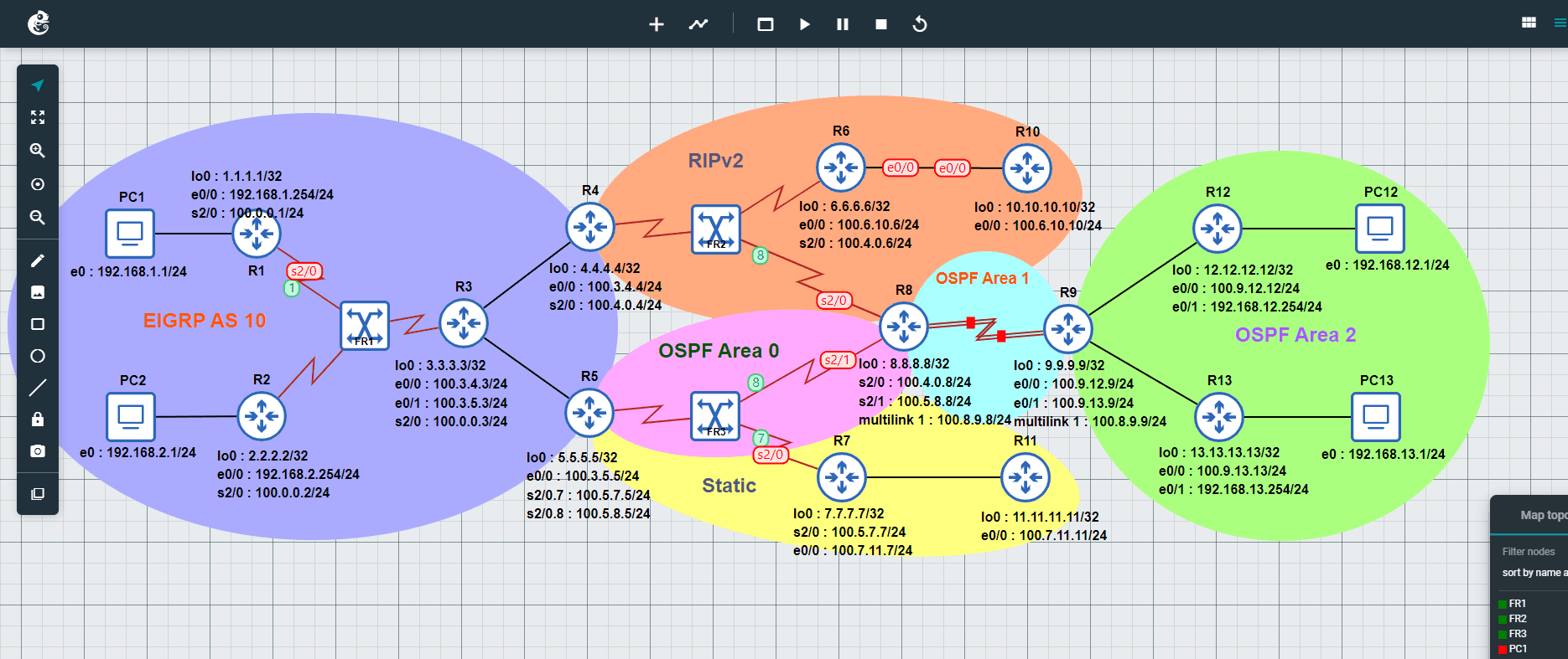 STP, VTP, VLSM, OSPF, RIP, EIGRP, STATIC routing, redistribution, virtual link, frame relay 등을 배웠고 과제도 있었는데 대충 이러하다.