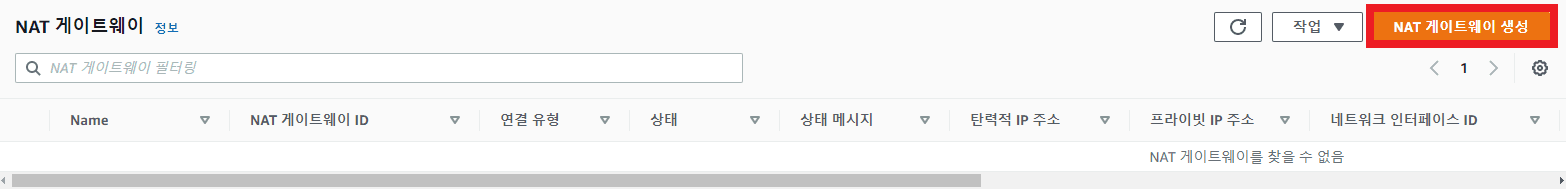 NAT 게이트웨이 생성