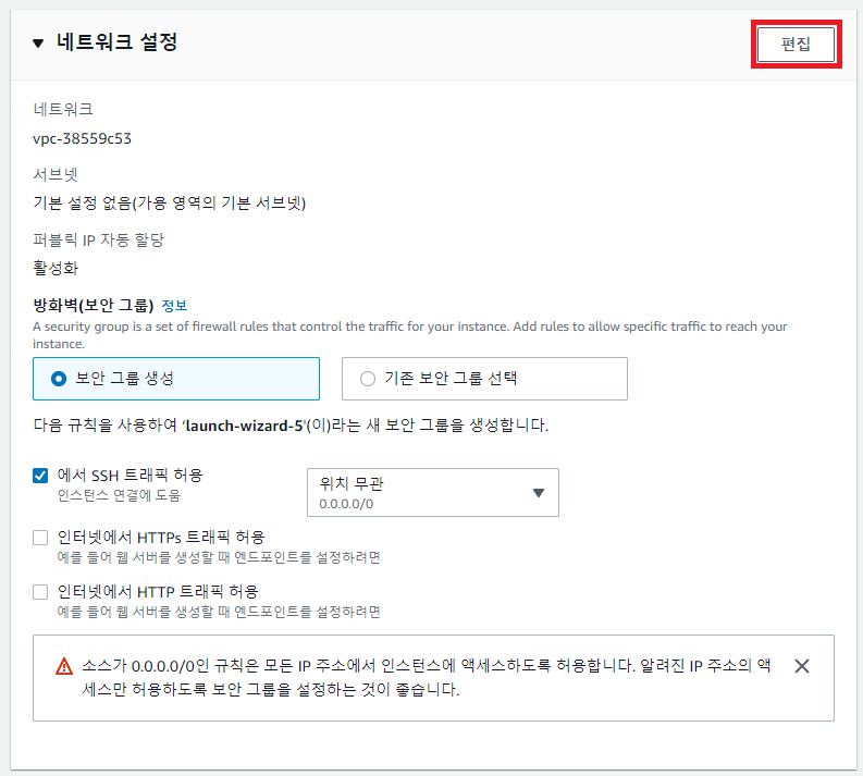 - 대상: 0.0.0.0/0