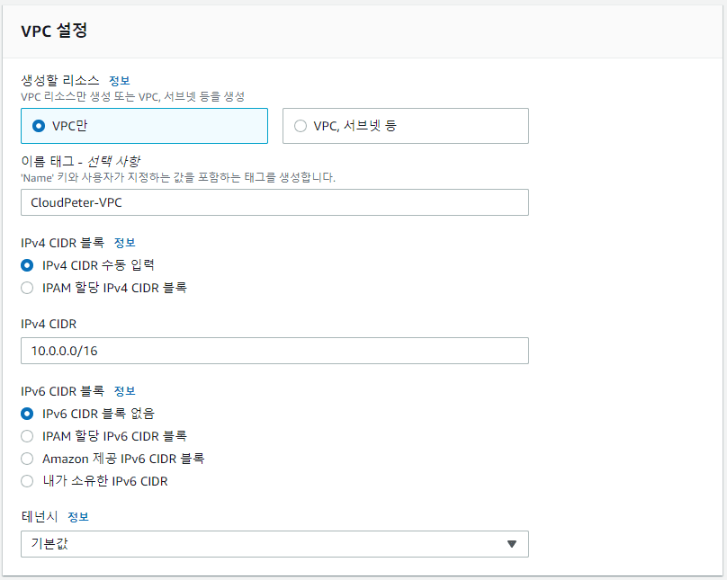 - 이름: CloudPeter-VPC