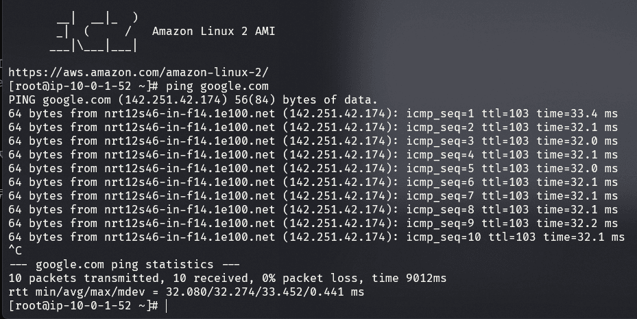 | NAT 게이트웨이 생성 | EC2 인스턴스 접근 후 통신 확인 |