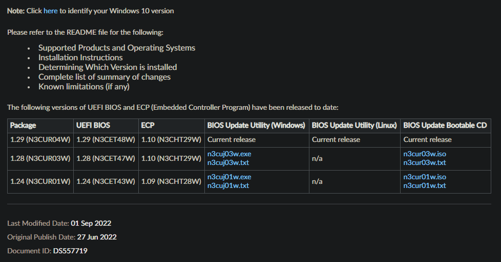 1. BIOS Update Utility (Windows) 파일을 버전 별로 다운받는다.